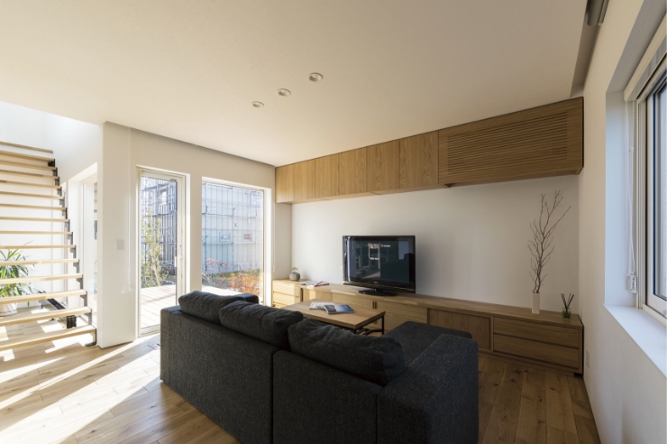 高性能な断熱効果と長期的な維持能力により快適な温熱環境を図る為、外壁面にスタイロエース-Ⅱ75mm、壁体内と天井面にはブローイング式グラスウール、基礎部分には押出法ポリスチレンフォームを用いて家全体を隙間なく覆い、魔法瓶のような高い断熱性能を実現しております。