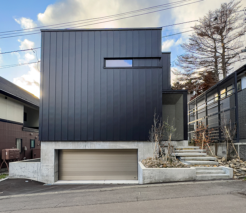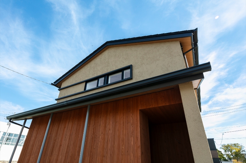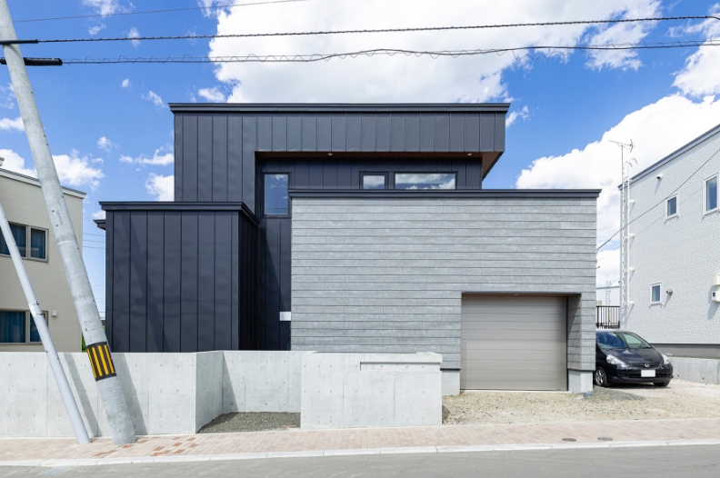 屋根の色も壁の色と合わせると一体感のある建物になります。ブラックまたはホワイトは、サッシの色、換気フードの色、タラップの色がブラックとホワイトがあるため、合わせやすいカラーです。