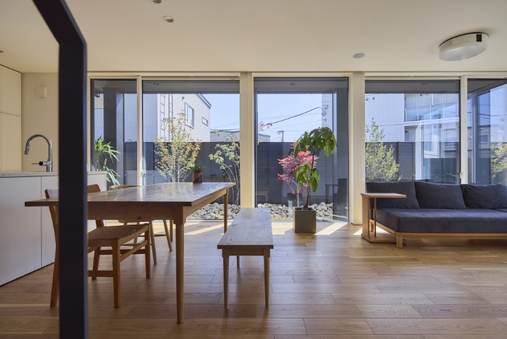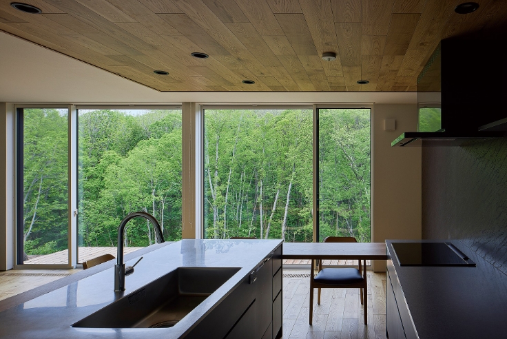 日々の暮らしの中で、視線を彩る窓。開けていても閉めていても外とつながる心地よさを生む特別な要素となっています。KUNIMOKUでは、断熱性に優れた樹脂サッシを空間デザインの一部となるような窓の位置を設計し提案しております。