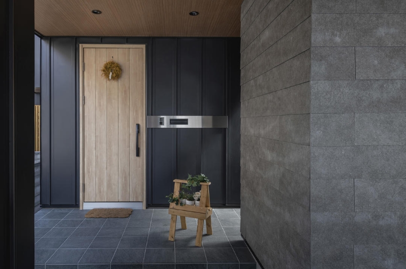 毎日のように出入りする玄関ドア。壁と一体になるように、またひとつのアクセントとなるように、利便性は言うまでもなく、デザインの一部としての玄関ドアを提案します。また、性能面においても、熱貫流率は1.79W/㎡Kと高性能な断熱性とストレスの掛からない出入りが可能な電子錠がお選びいただけます。